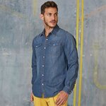 100% cotton. Enzyme washed shirt. Fittted style. Fancy stud buttons. 2 studded chest pockets with flap. Front and back yokes. Studded cuffs.