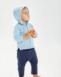 Soft, zip through baby hoodie with brushed inner, Deep single layer 3-piece hood for better fit with flatlock seams and kangaroo pockets, Natural herringbone tape at back neck and side hood with mock drawcord effect, Straight hem with side vents and drop back tail with inside locker patch to allow for decoration, Tear off label at back neck, OCS blended certified, Made from Oeko-Tex Standard 100, GOTS certified, *Heather Grey Melange: 71% (organic or in conversion to organic) cotton, 21% rPET, 8% viscose, *Height: 66/76cm 76/86cm 86/92cm 92/98cm 104/110cm