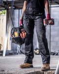 Hardwearing polycotton fabric, Multi pocket design with five pockets, Knee pad pockets, Part elasticated waistband, Triple stitched seams with reinforced crotch